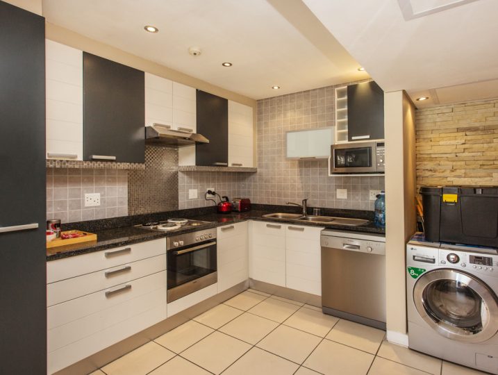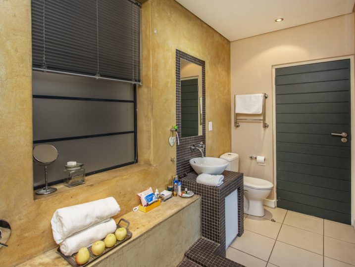 Cosy lofty 2 bedroom fully equipped home with mood lighting, full length balcony with panoramic view from Lions head to the Waterfront over the top of the city. Cnr Patio Set and outdoor dining with compact gas braai. Retractable awnings to grant you shade in the summer…fully kitted modern kitchen, ensuite designer bathroom with large tub and spacious innovative shower design.